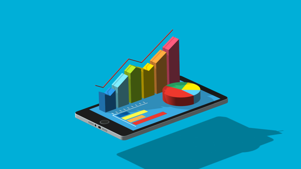 No plugins required. Isometric phone with graph and data elements using C4D render in After Effects.